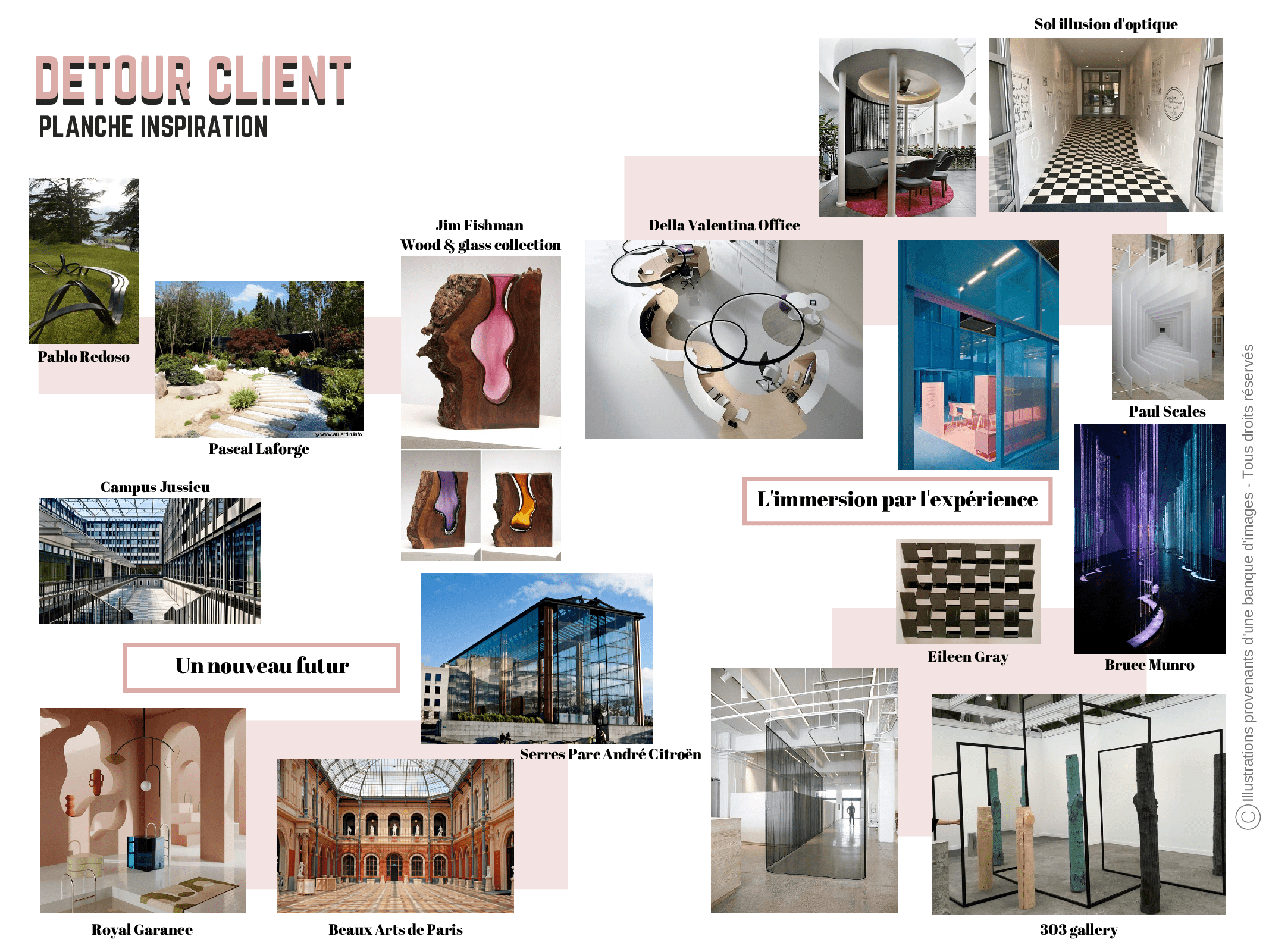 L’immersion est le deuxième axe fort de notre projet. Dans ce monde en perpétuelle mutation, l’homme est de plus en plus stimulé et souhaite vivre un maximum d’expériences en un minimum de temps. Pressé par celui-ci, il oublie alors de le savourer et ne garde pratiquement aucun souvenir du moment vécu. Le Détour que nous proposons redessine non seulement le schéma du salon, mais aussi celui de la structure interne des stands.