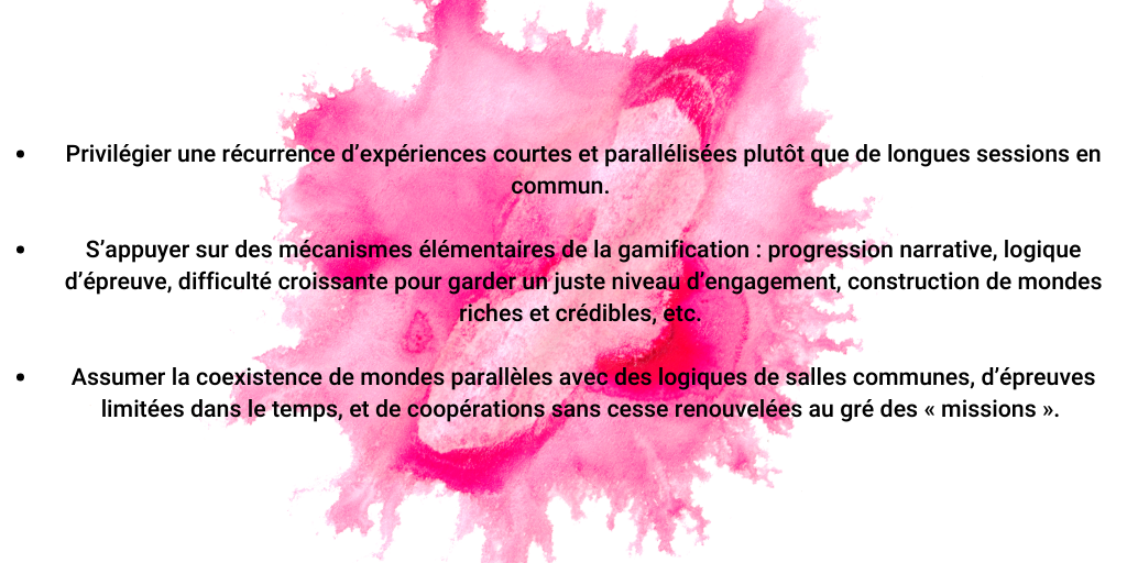 Une fois ces grands principes acquis, le monde des jeux vidéo peut devenir une source d’inspiration très grande pour animer et construire une expérience collective inspirante et mémorable, et ce à l’échelle du design de l’interaction.