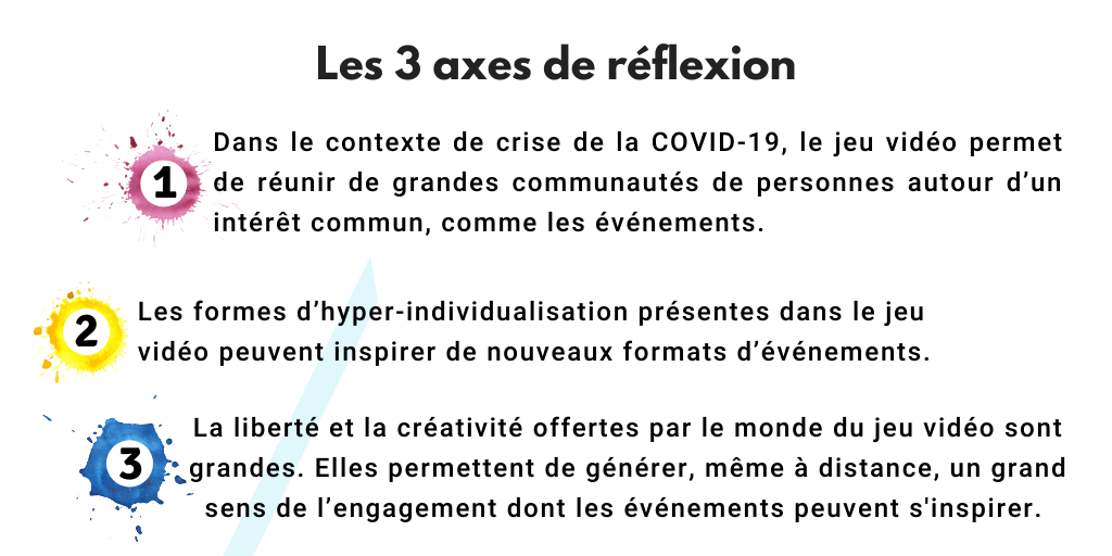 – Dans le contexte de crise de la COVID-19, le jeu vidéo permet de réunir de grandes communautés de personnes autour d’une intérêt commun, comme les événements.