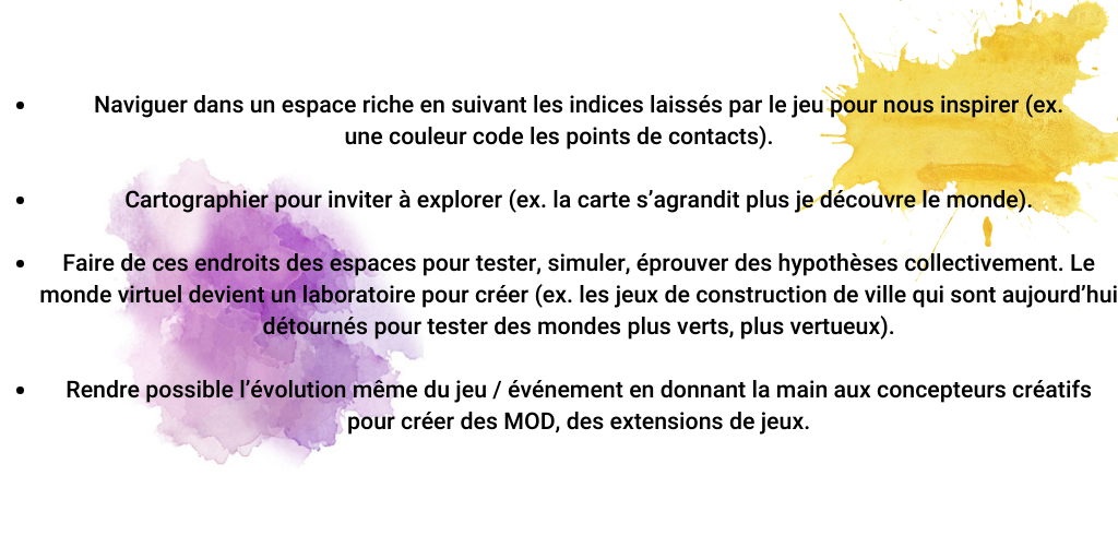 – La liberté et la créativité offertes par le monde du jeu vidéo sont grandes. Elles permettent de générer, même à distance, un grand sens de l’engagement dont les événements peuvent s’inspirer.