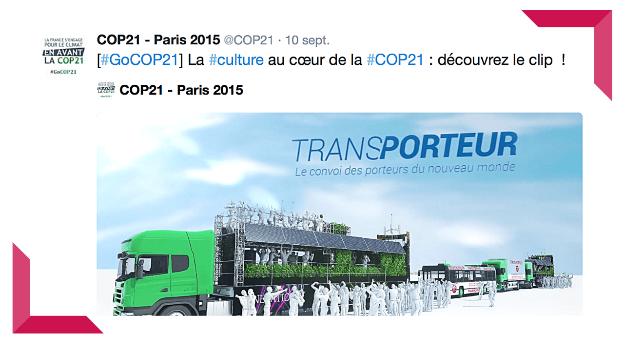 Ce dispositif Trans-Porteur a suscité un tel engouement que le Secrétariat général de la COP21 et la Ville de Paris l’ont labellisé partenaire officiel.