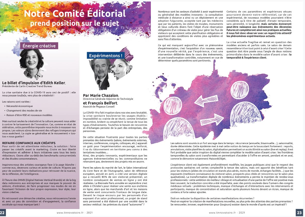 Page 22 et 23 de la Revue annuelle #3 de L’Innovatoire / Le comité éditorial prend position sur le sujet « L’événement : objet et outil de créativité »