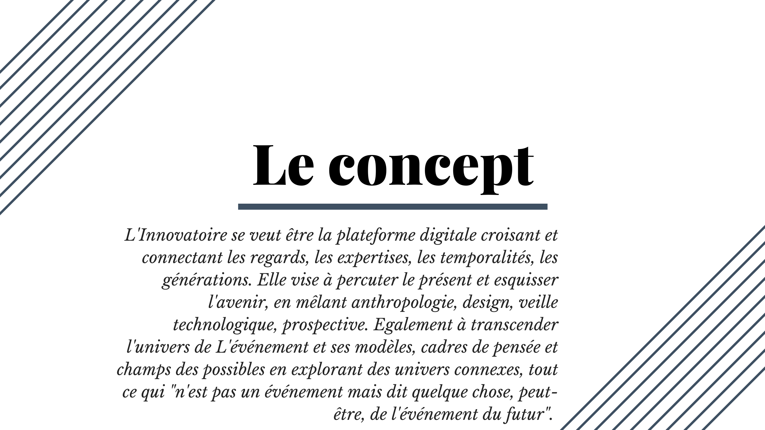 Les époques passent, ne se ressemblent pas, et le’événement ne trépasse pas ; il se transforme au gré des technologies, des enjeux et des Hommes qui l’habitent. En ce qu’il dit toutes ces choses de nous, il est un objet d’étude magnifique. Décortiquer l’événement, le désosser, le projeter, le mettre en perspective, c’est raconter l’histoire des interactions humaines, celles qui ont façonné hier et celles qui jalonneront notre quotidien demain.